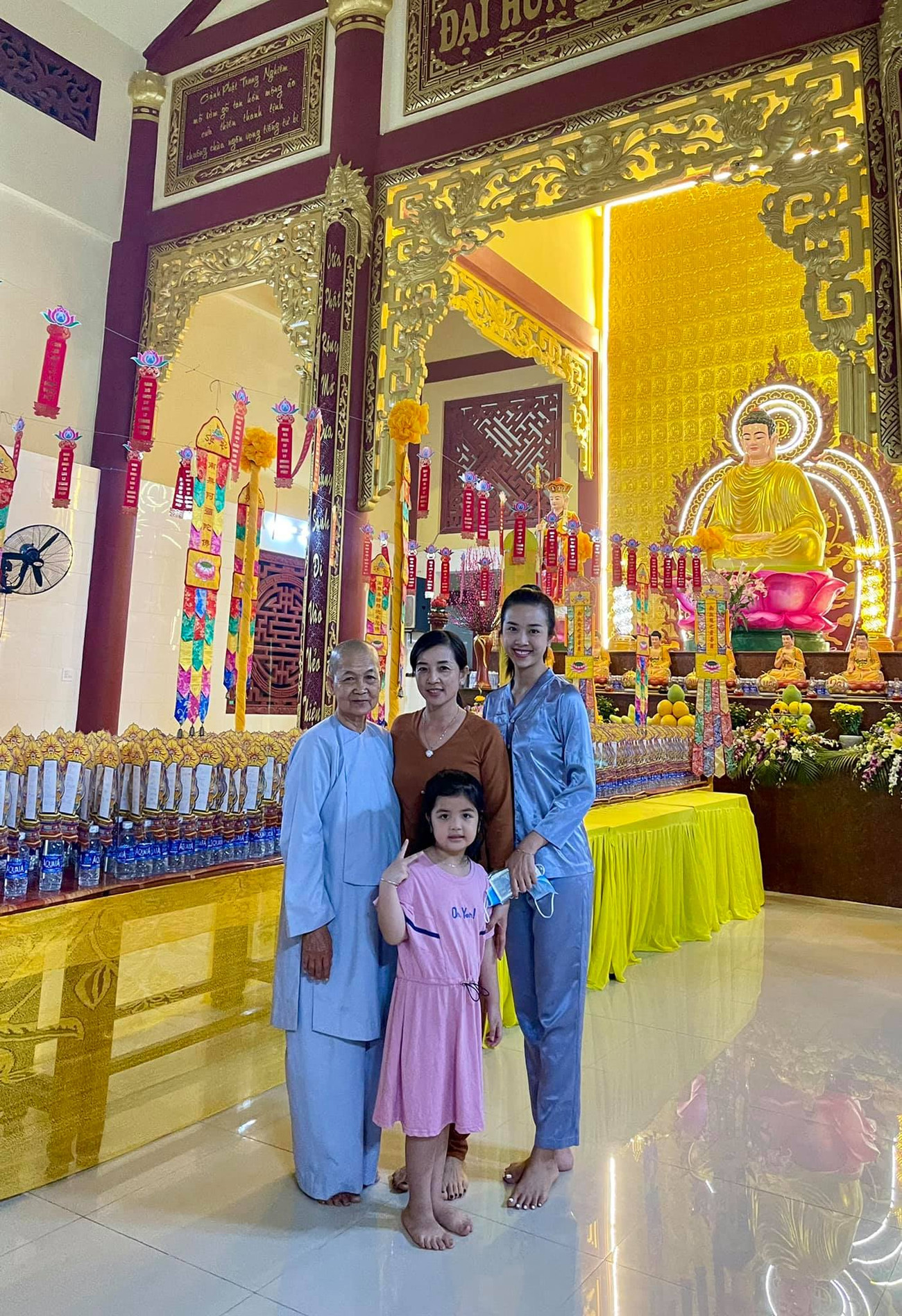 Á hậu Thuý An và mẹ đi chùa đầu năm để cầu may.