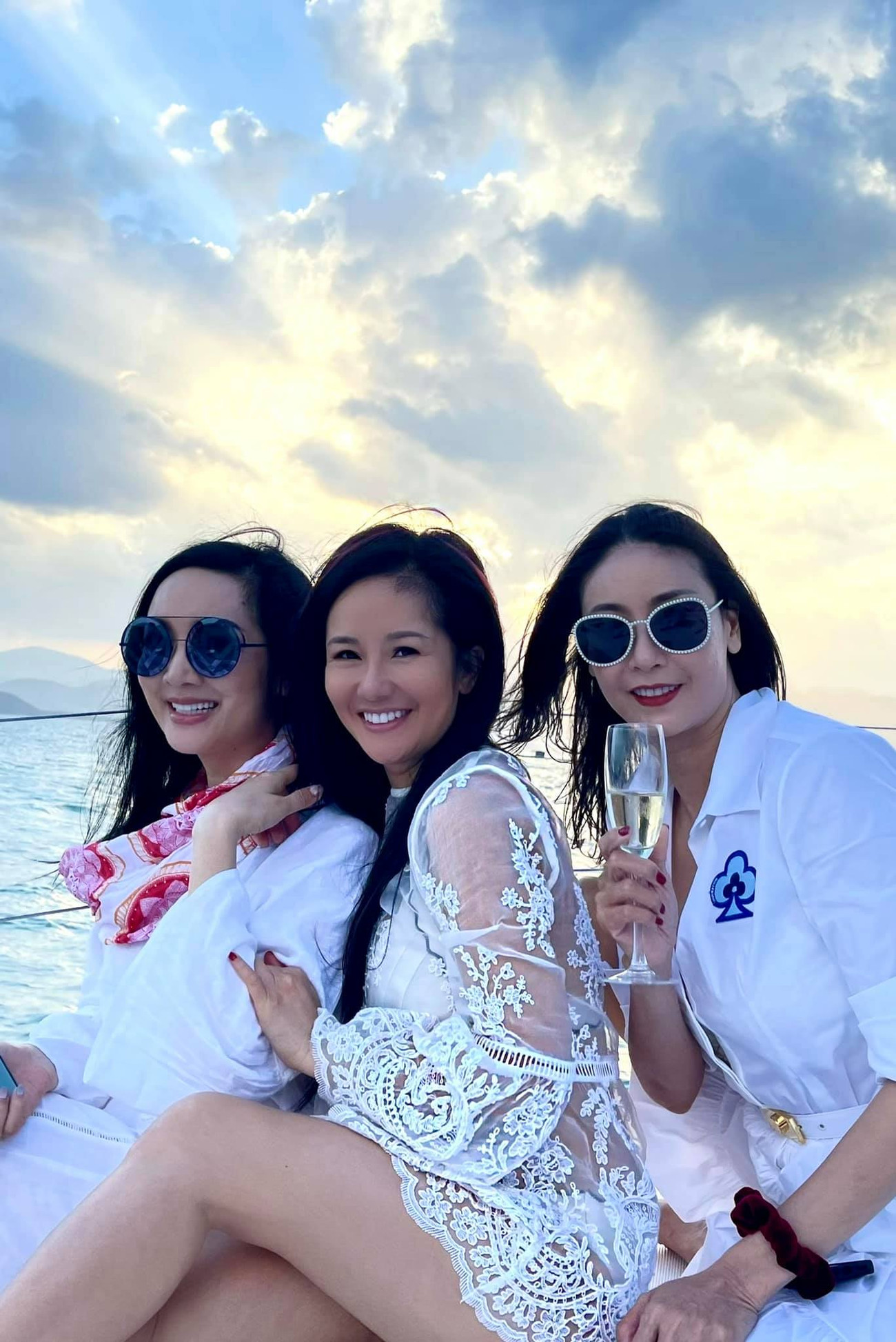 Hà Kiều Anh thân thiết bên những người bạn thân - Hoa hậu Đền Hùng Giáng My và diva Hồng Nhung.