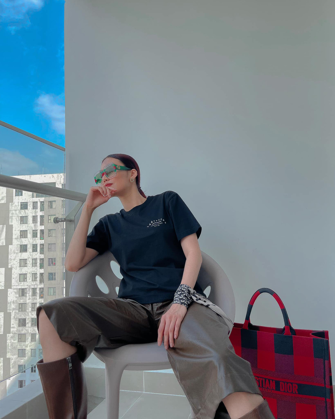Hoa khôi Lan Khuê cực ngầy với set đồ hiệu sành điệu và đắt đỏ.