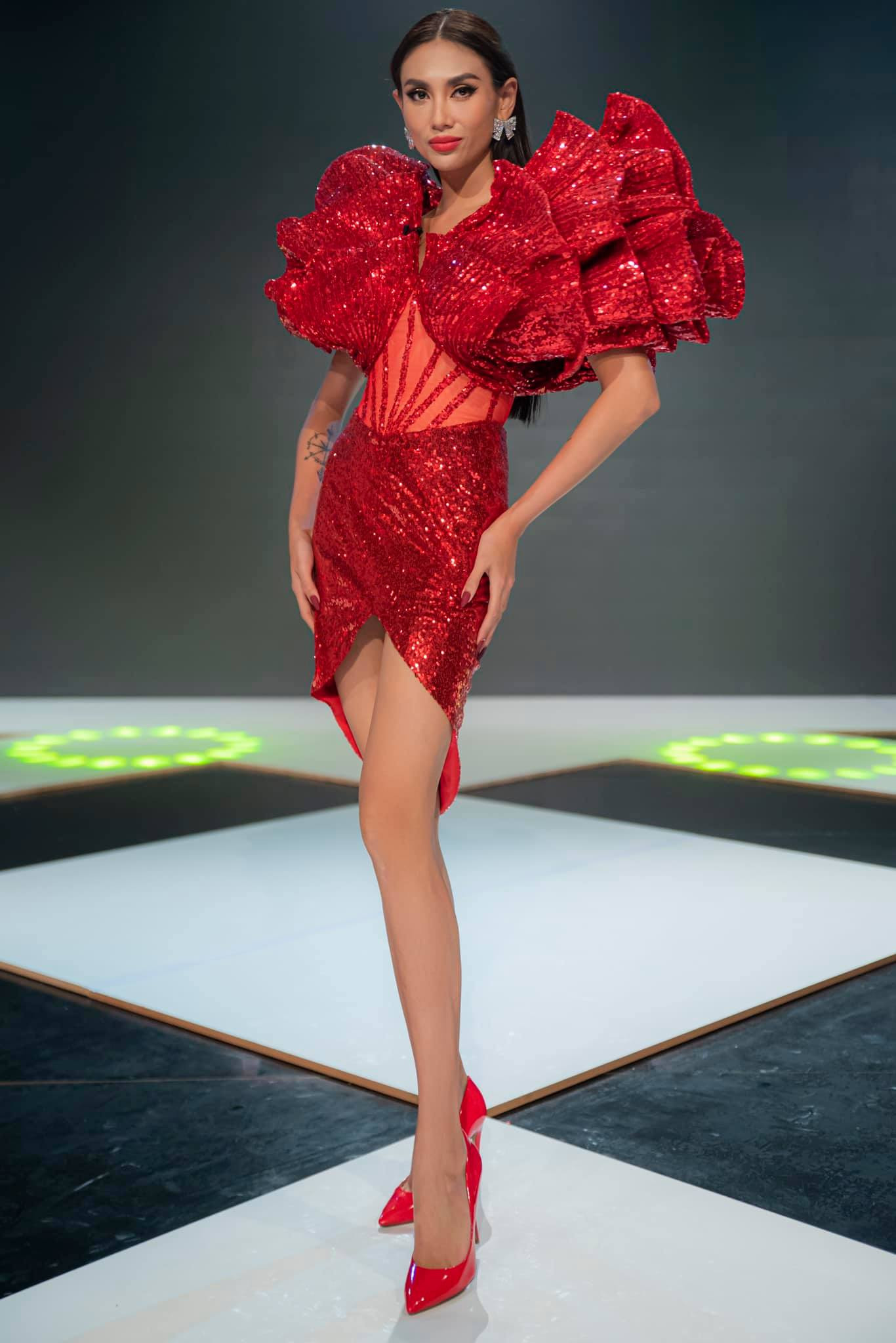 Siêu mẫu Võ Hoàng Yến diện bộ váy đỏ rực, khoe đôi chân dài miên man.
