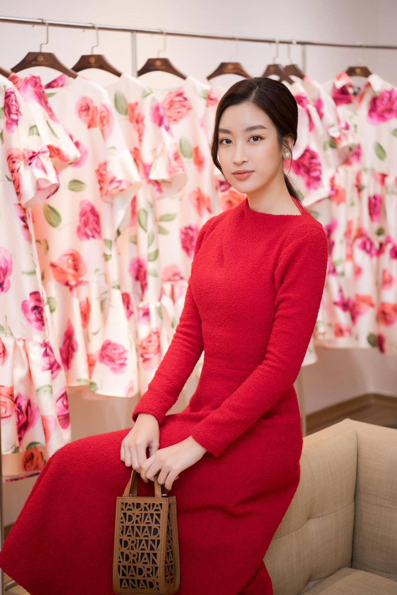Hoa hậu Đỗ Mỹ Linh nổi bật trong bộ váy gam màu đỏ rực rỡ.