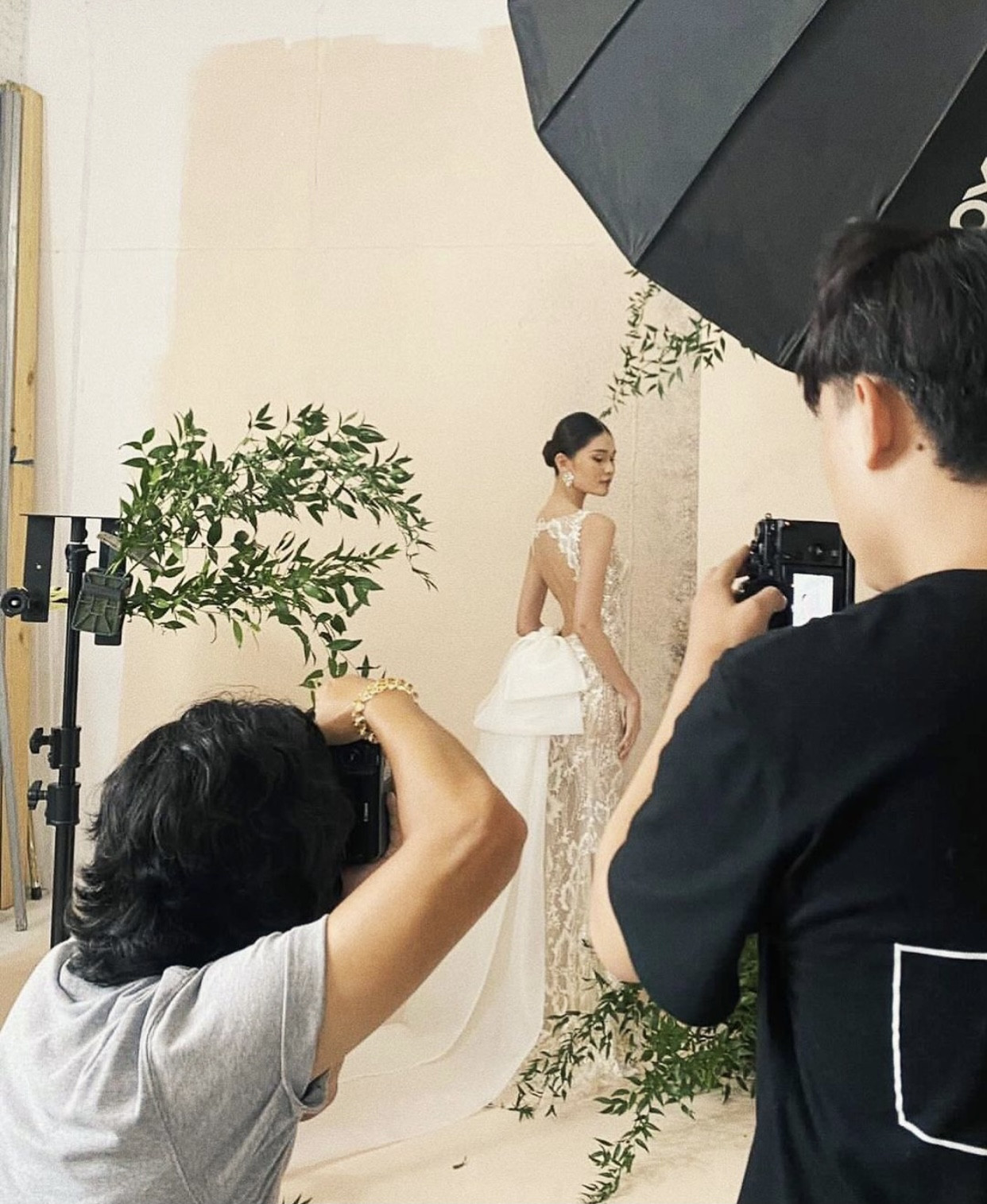 Á hậu Thuỳ Dung hoá cô dâu yêu kiều trong hậu trường chụp ảnh mới.