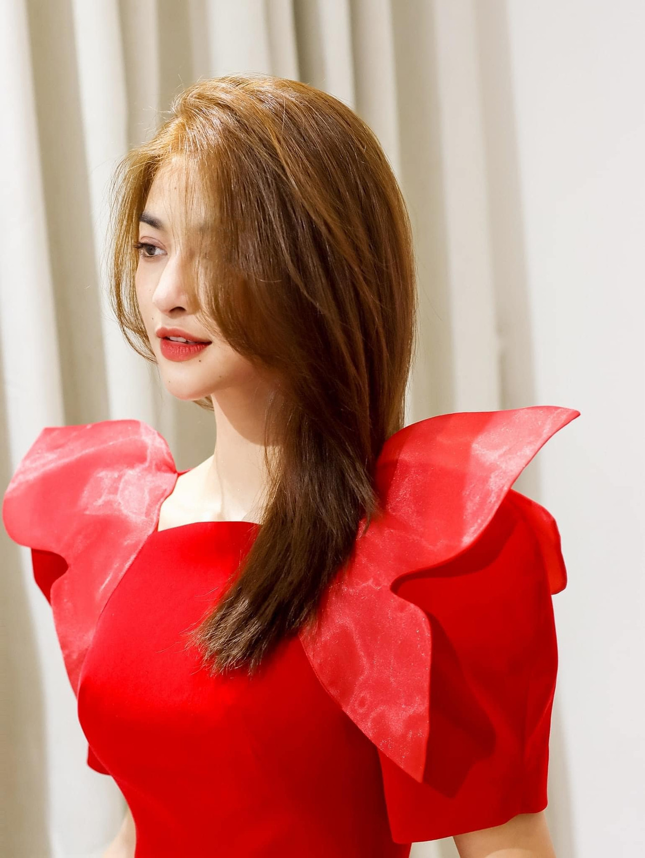 Á hậu Kiều Loan xinh đẹp đầy nổi bật trong bộ váy đỏ rực.