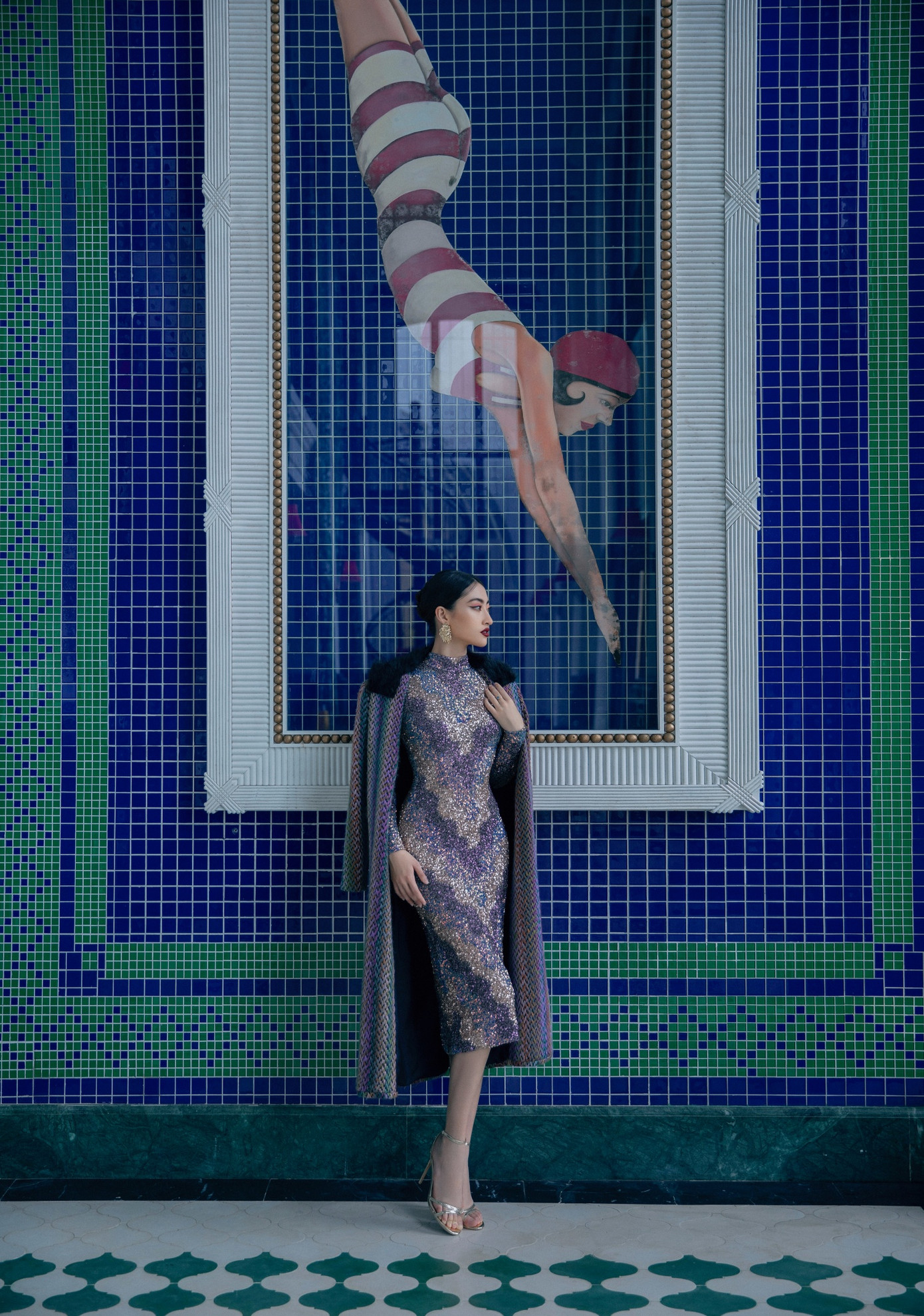 Trong bộ ảnh mới nhất, Lương Thuỳ Linh makeup tone đậm, trang phục cổ điển đa màu sắc. Chỉ bằng đôi mắt sắc lạnh với ánh nhìn sâu và gương mặt lạnh lùng, tiết chế cảm xúc một cách phù hợp, Lương Thùy Linh đã thành công tạo cảm giác “mợ chảnh”.