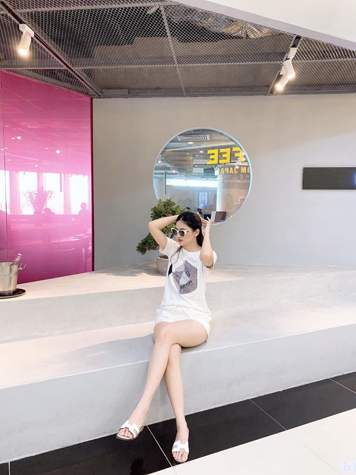 Á hậu Thanh Tú ăn mặc giản dị nhưng vẫn gây chú ý với đôi chân dài miên man.