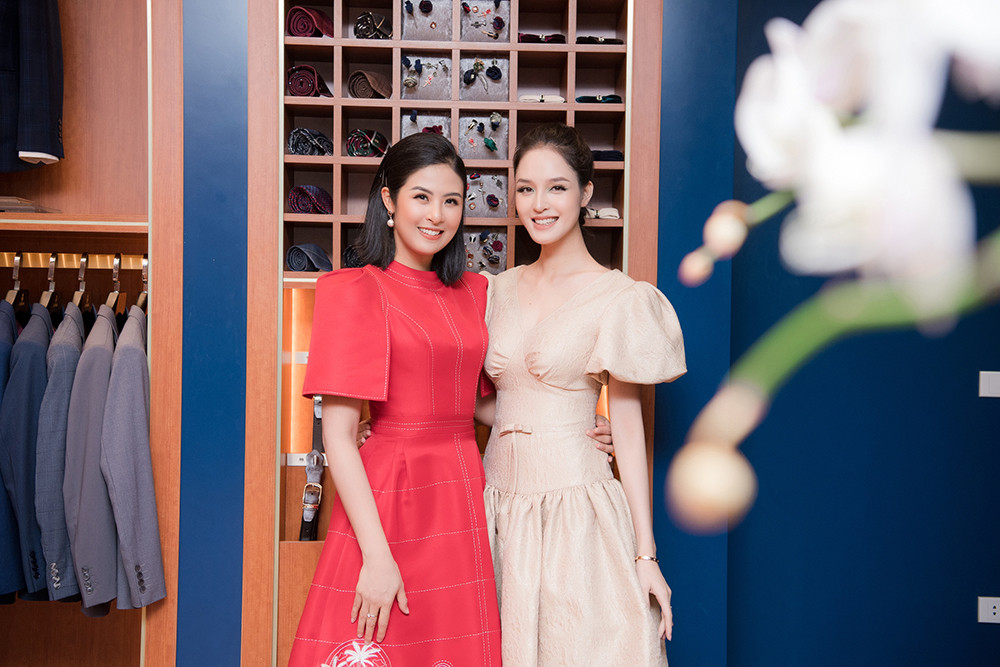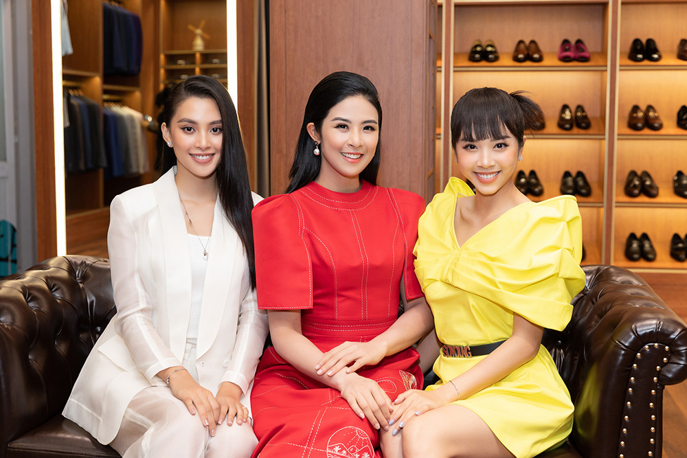 Hoa hậu Tiểu Vy và Á hậu Thúy Anh sánh vai đến chúc mừng đàn chị.
