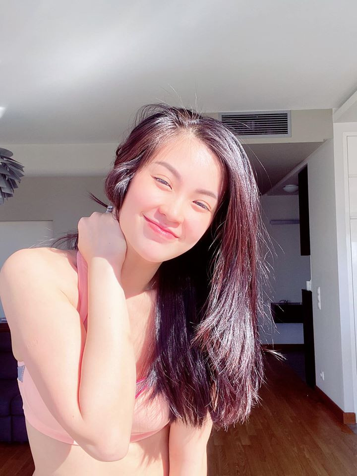 Để mặt mộc ở nhà tập thể thao, Kỳ Duyên vẫn rất xinh đẹp.