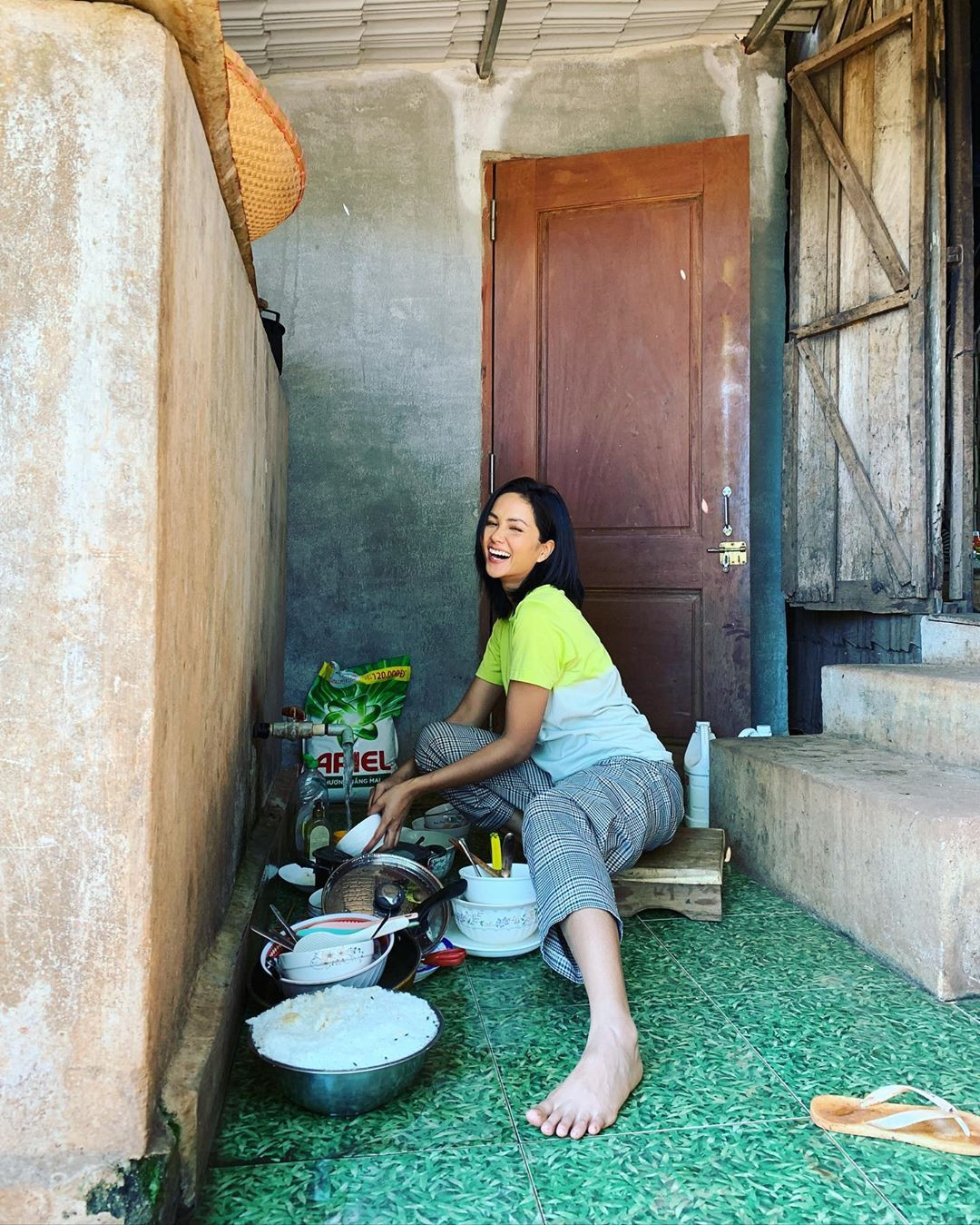 Về quê ở bên gia đình để thực hiện cách ly toàn xã hội, Hoa hậu H'Hen Niê tự tin để mặt mộc và tham gia các hoạt động như hái rau, trồng lúa, hái hạt điều, hạt cafe... Dù chỉ ngẫu hứng chụp ảnh trên ruộng lúa với gương mặt mộc, H'Hen Niê vẫn đẹp đầy thần thái khiến fans ngưỡng mộ.