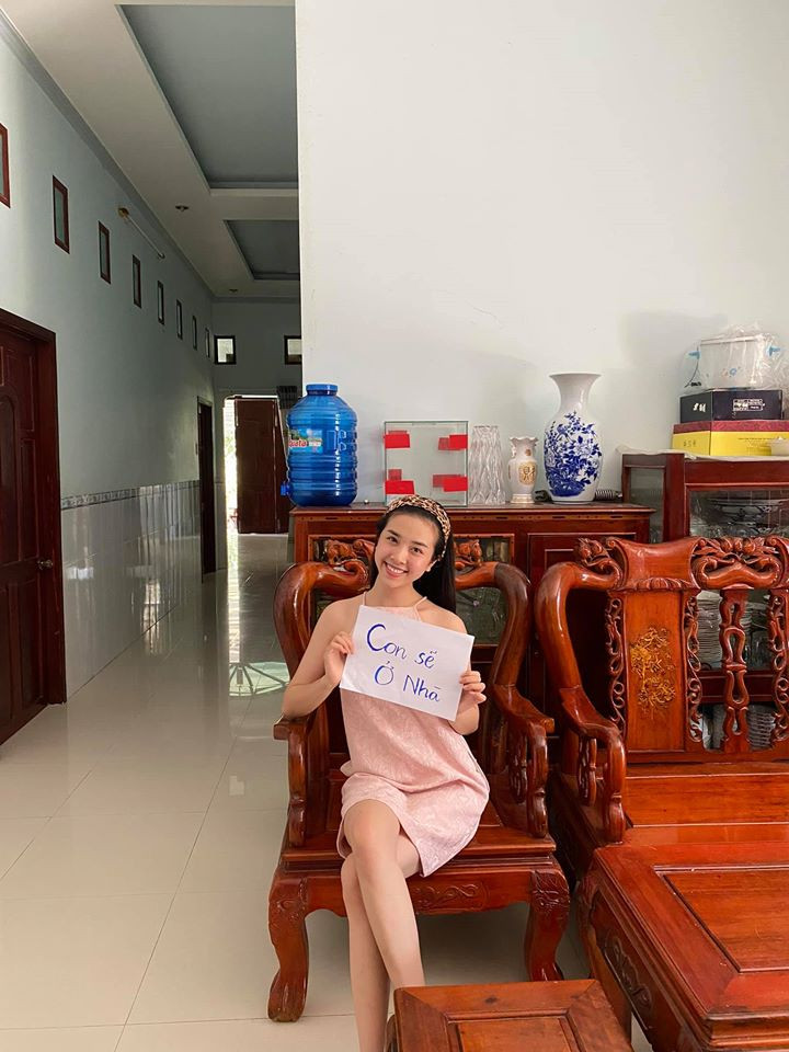 Xứng danh là một trong những nàng hậu sở hữu mặt mộc đẹp nhất showbiz Việt, Tiểu Vy vẫn luôn xinh đẹp, rạng ngời ngay cả khi ở nhà thực hiện cách ly toàn xã hội và ăn mặc cực giản dị.