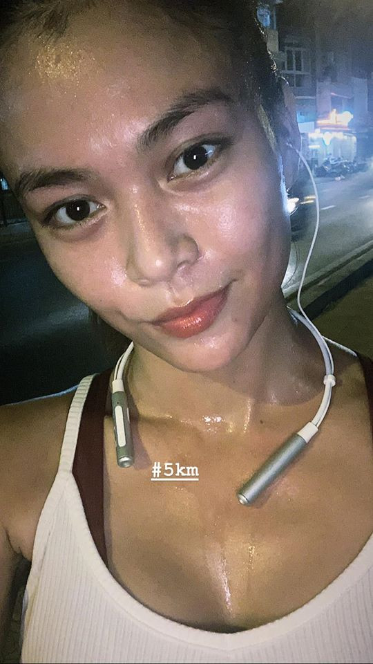 Hoa hậu Kỳ Duyên tích cực tập thể thao để phòng chống dịch bệnh.