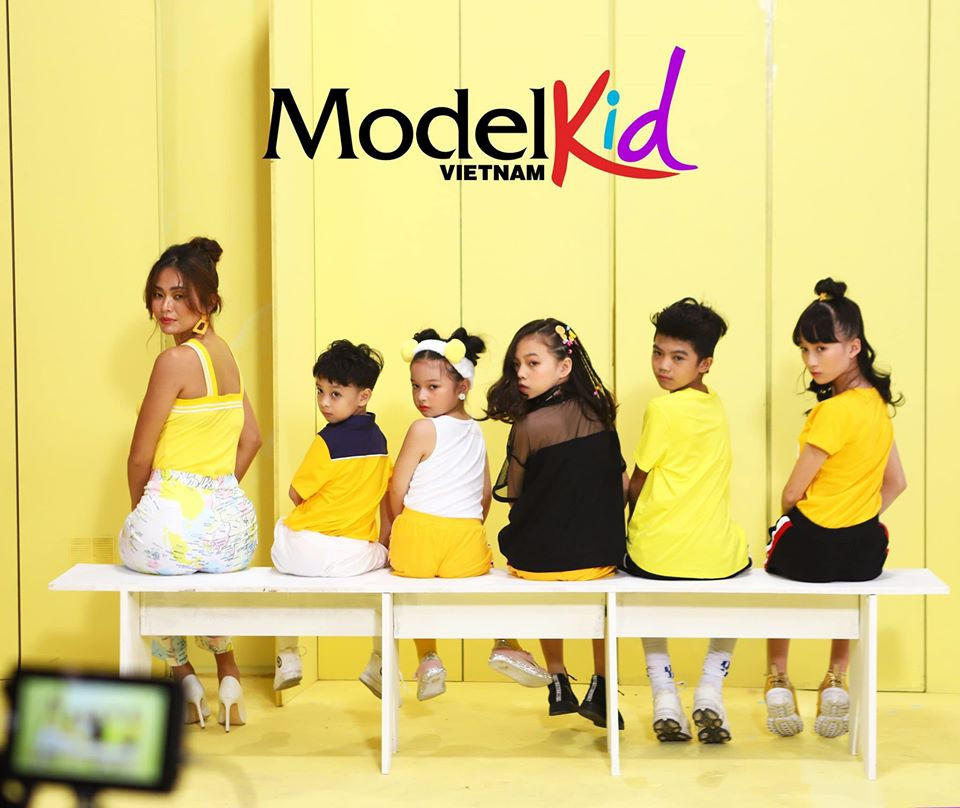 Mâu Thuỷ và các người mẫu nhí tạo dáng đáng yêu.