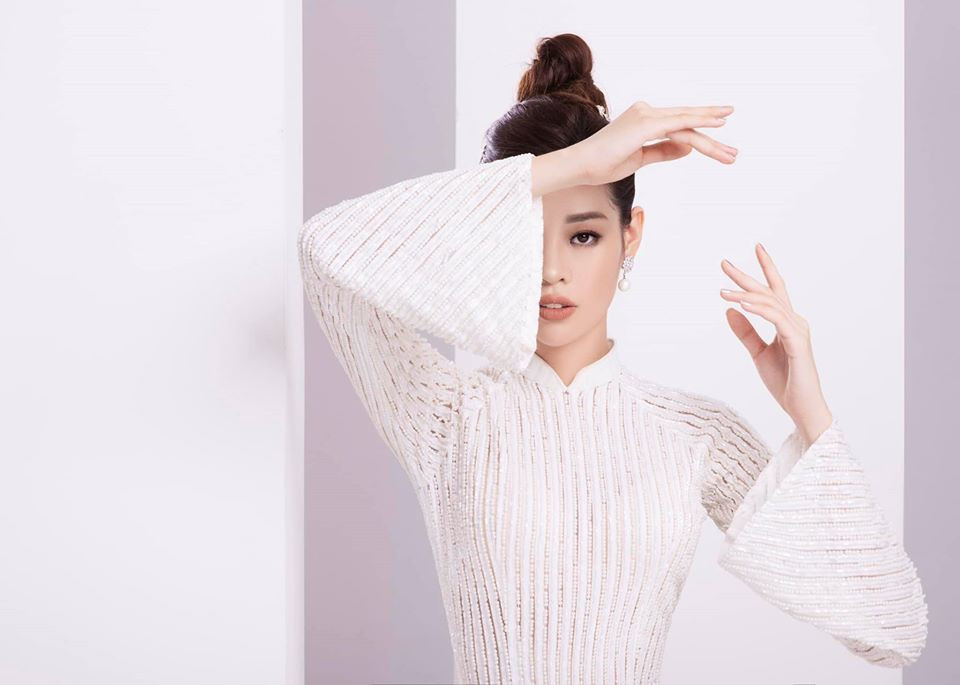 Hoa hậu Khánh Vân tiếp tục khoe dáng yêu kiều với trang phục áo dài cách tân.