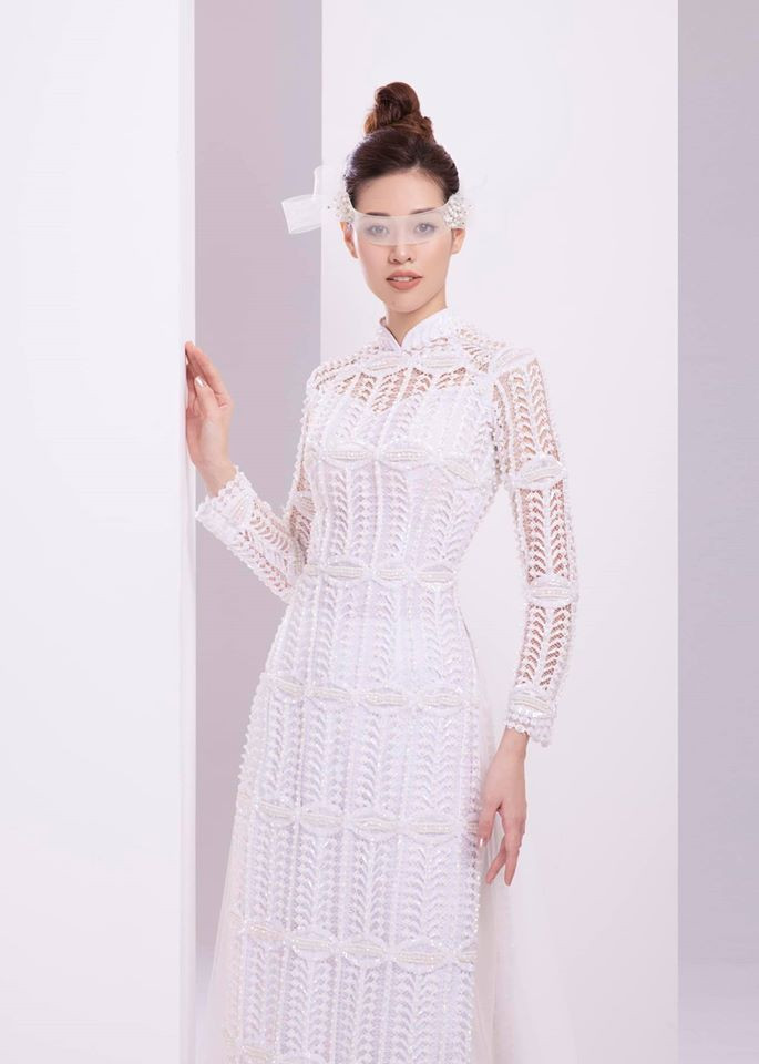Bộ áo dài có phụ kiện độc đáo khiến cho Hoa hậu Hoàn vũ Việt Nam 2019 thêm nổi bật.