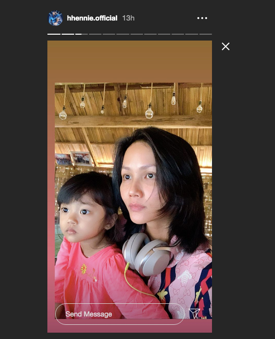 Hoa hậu H'Hen Niê thảnh thơi bên cháu gái khi về quê thăm gia đình.