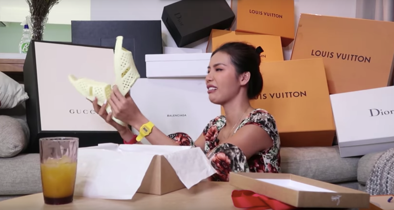 Nhưng món đồ độc nhất mà Minh Tú đập hộp trong lần này phải kể đến đôi dép tổ ong ngàn lỗ 'thần thánh' khiến fans được một phen cười không nhặt được mồm.