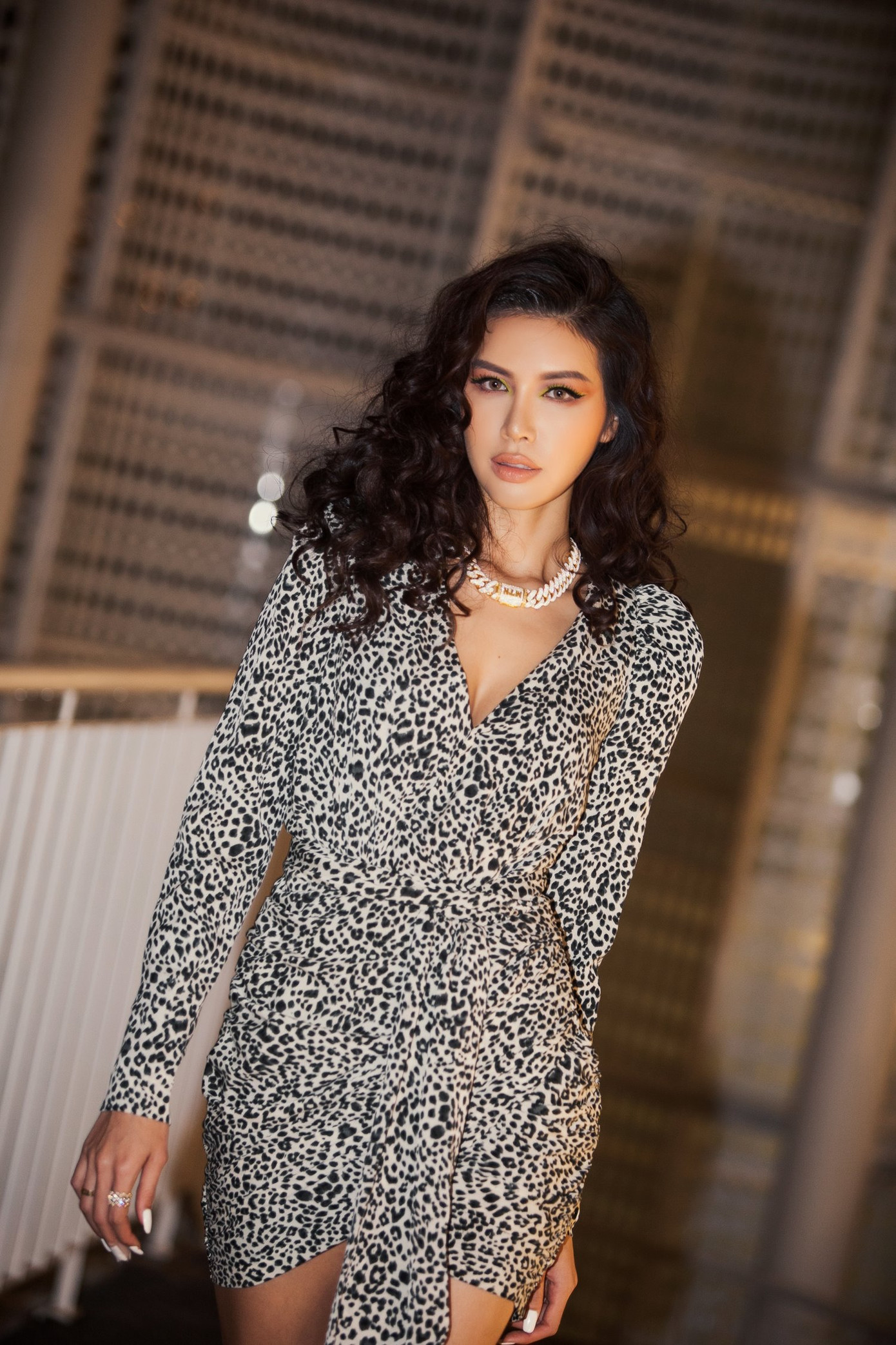 Mới đây khi xuất hiện tại Asian Kids Fashion Week 2020, Minh Tú diện váy da báo bó sát quyến rũ khoe vòng eo thon thả.