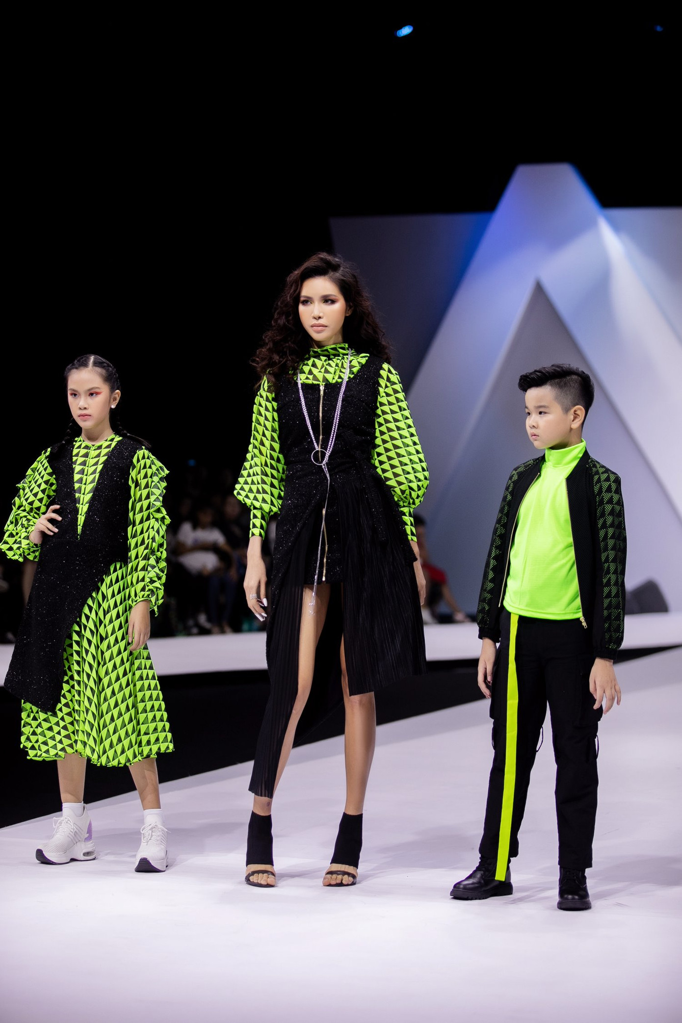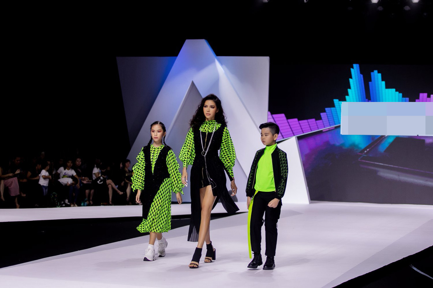 Minh Tú tự tin sải bước trên sàn diễn thời trang cùng những người mẫu nhí.