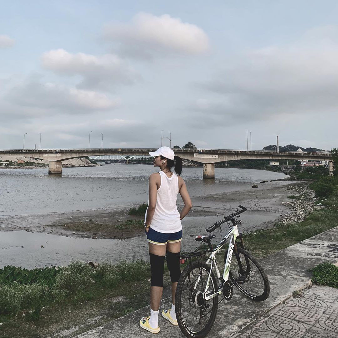 Hoa hậu H'Hen Niê khoe vóc dáng khoẻ khoắn khi đạp xe.