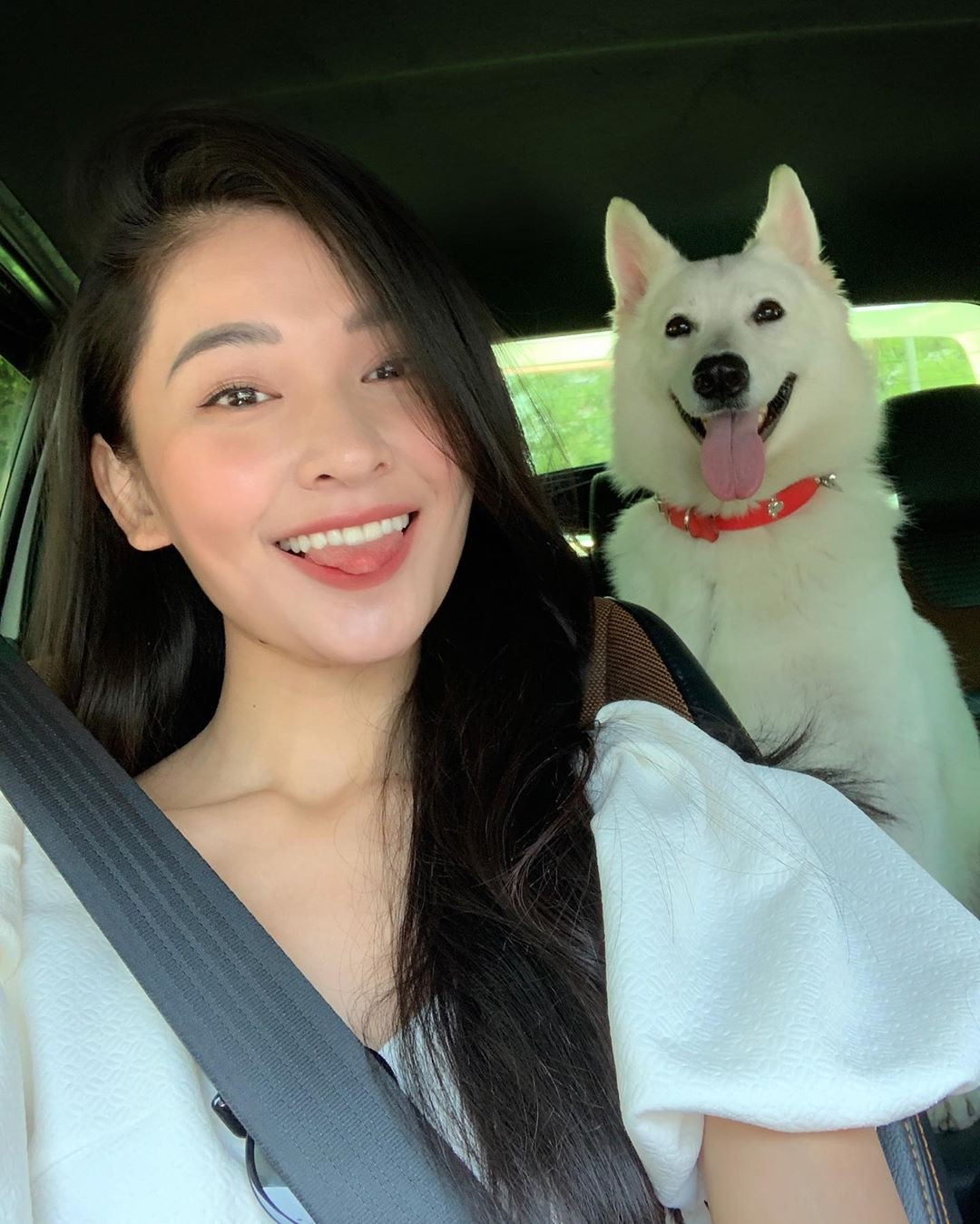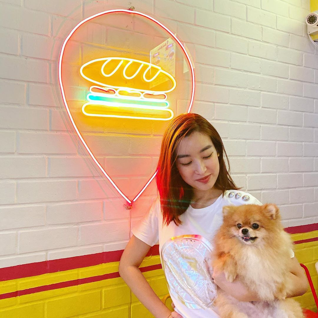 Không hẹn mà gặp, Á hậu Thuỳ Dung cũng khoe chú cún cưng trắng toát cực kỳ đáng yêu.