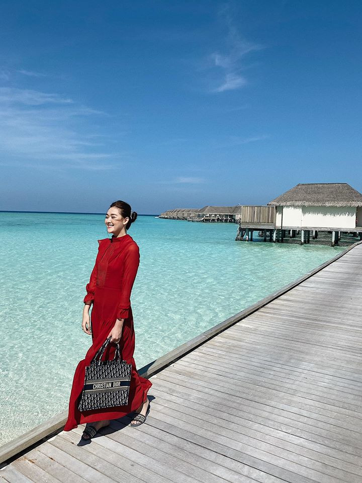 Á hậu Tường San kín đáo nhưng vẫn xinh đẹp ở thiên đường Maldives.