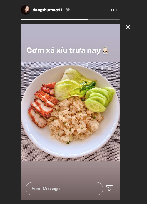 Hoa hậu Thu Thảo tự làm món cơm xá xíu trong những ngày ở nhà chống dịch.