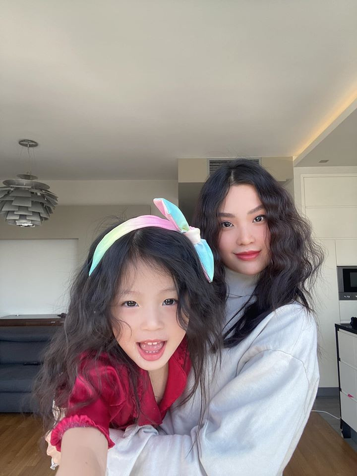 Hai mẹ con Á hậu Diễm Trang thử nghiệm phong cách tóc xù dễ thương trong những ngày ở nhà.