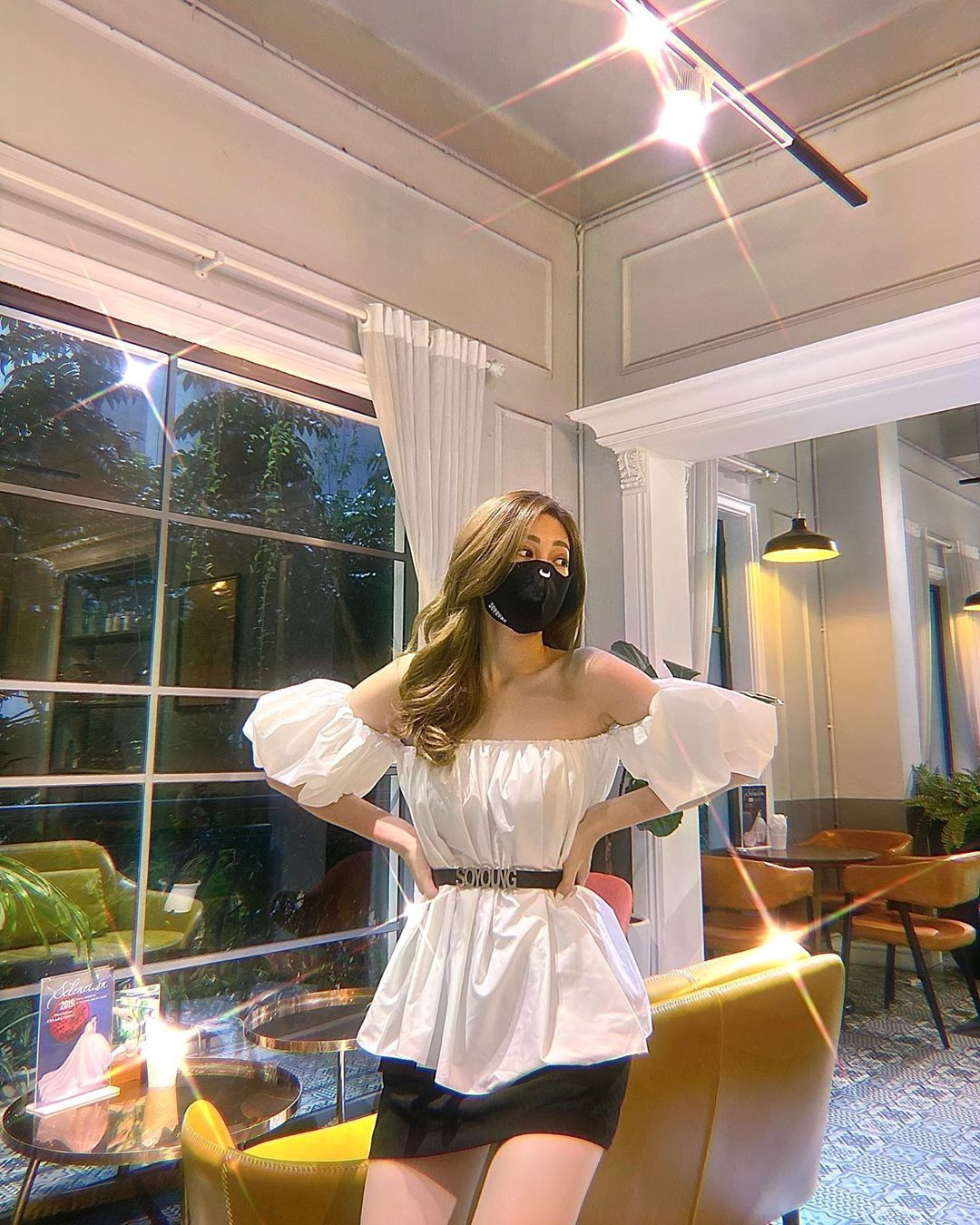 Á hậu Phương Nga khoe vai trần gợi cảm mặc dù đang đeo khẩu trang.