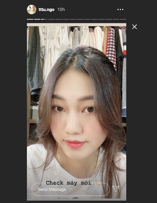 Á hậu Thuỳ Dung khoe mặt mộc xinh đẹp với camera thường khi ở nhà thực hiện cách ly.