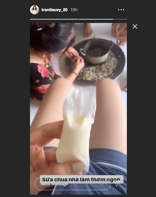 Hoa hậu Tiểu Vy cùng người nhà tự làm sữa chua trong những ngày cách ly.
