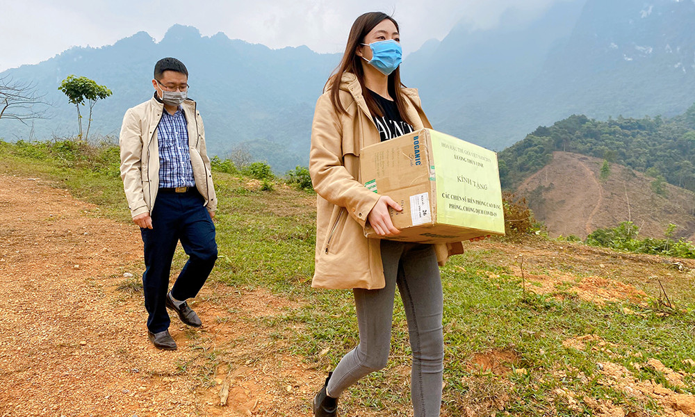 Hoa hậu Lương Thùy Linh cũng đã trao nhiều phần quà gồm khẩu trang y tế, nước rửa tay kháng khuẩn và một số nhu yếu phẩm cần thiết cho Đồn biên phòng cửa khẩu Sóc Giang, đồn biên phòng Cần Yên và đồn biên phòng Lũng Nặm.