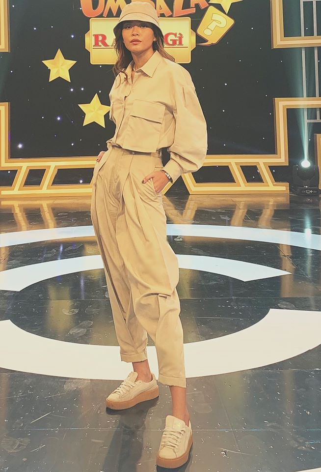 Á hậu Mâu Thuỷ cá tính và bụi bặm trên trường quay.