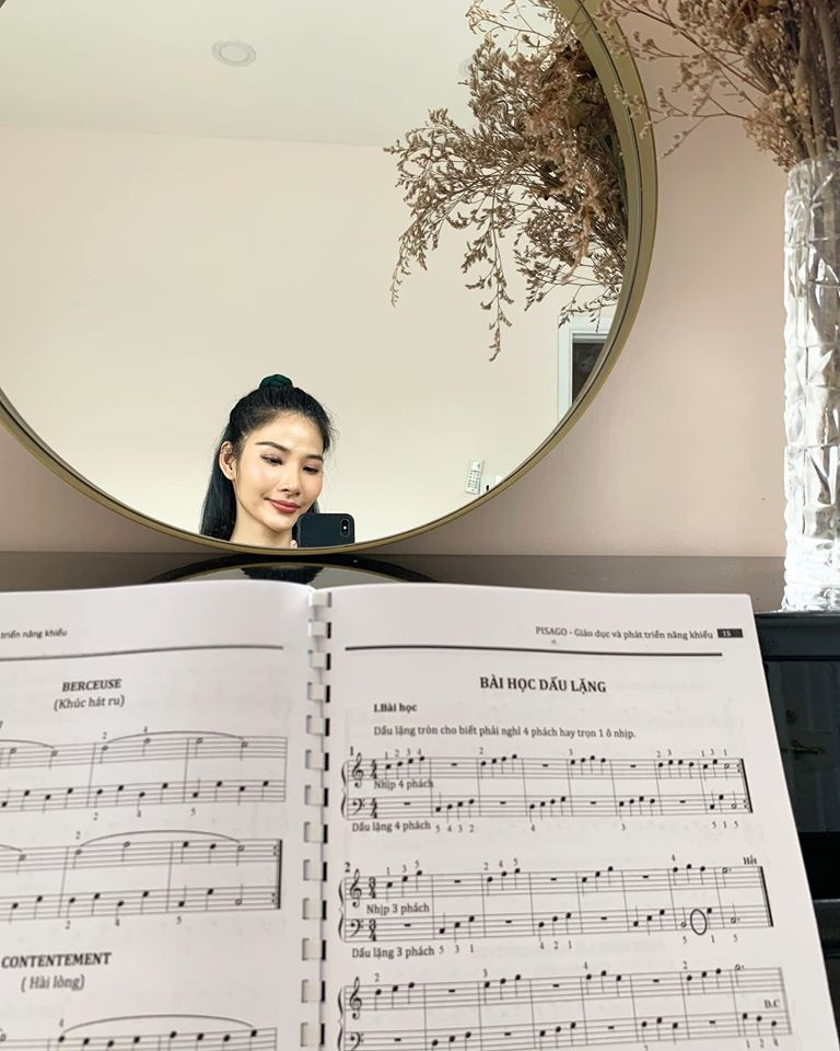 Á hậu Hoàng Thuỳ chăm chỉ học đàn, nhảy trong khi ở nhà cách ly.