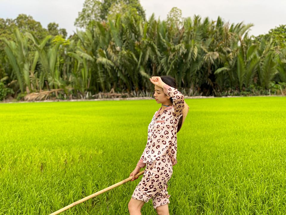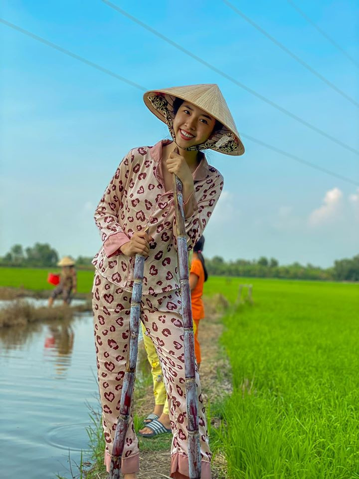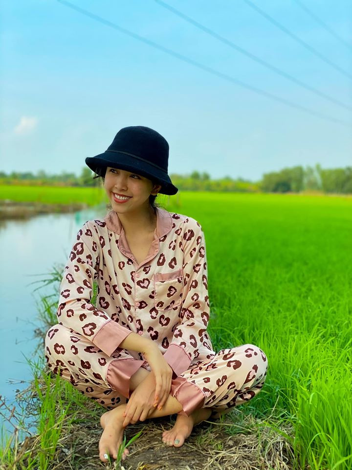 Á hậu Thuý An đang có những ngày thật thanh bình ở quê khi về nhà thực hiện cách ly toàn xã hội. Người đẹp có cơ hội trở về ký ức tuổi thơ với những buổi rong chơi trên ruộng lúa xanh mướt.