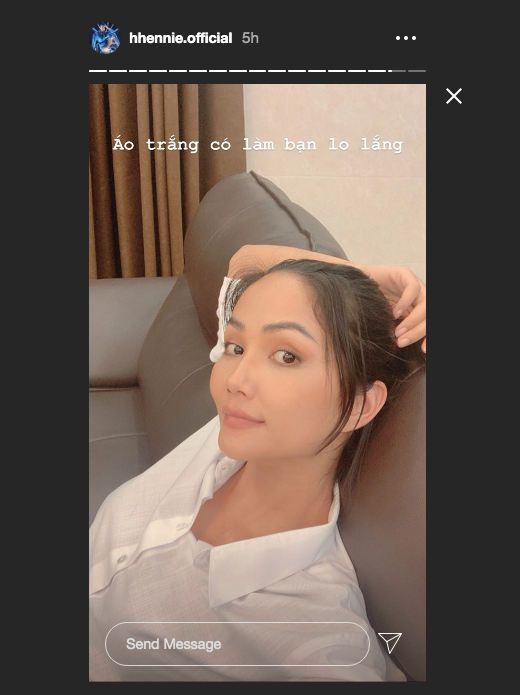 Hoa hậu H'Hen Niê giản dị với áo trắng tinh khôi nhưng vẫn xinh đẹp với thần thái kiêu sa.