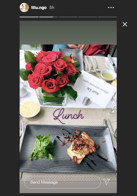 Á hậu Thanh Tú dùng bữa trưa sang chảnh nhân dịp sinh nhật của cô.
