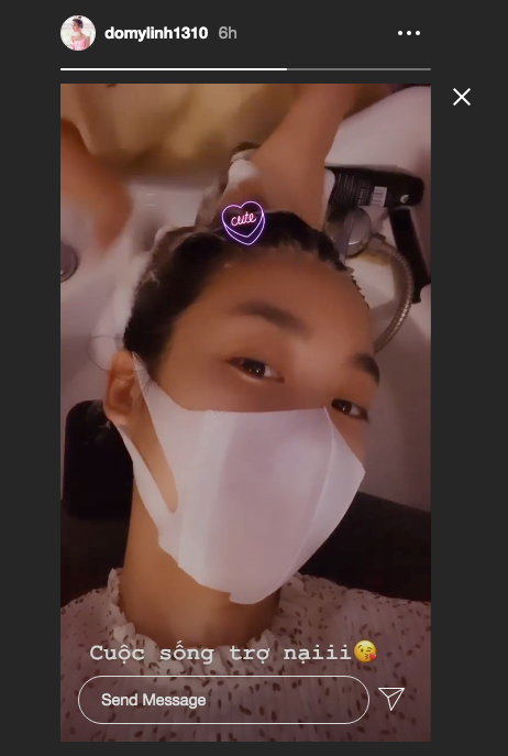 Hoa hậu Mỹ Linh hào hứng khi được đi gội đầu và làm đẹp sau chuỗi ngày dài ở nhà cách ly xã hội.
