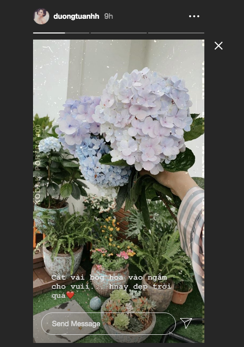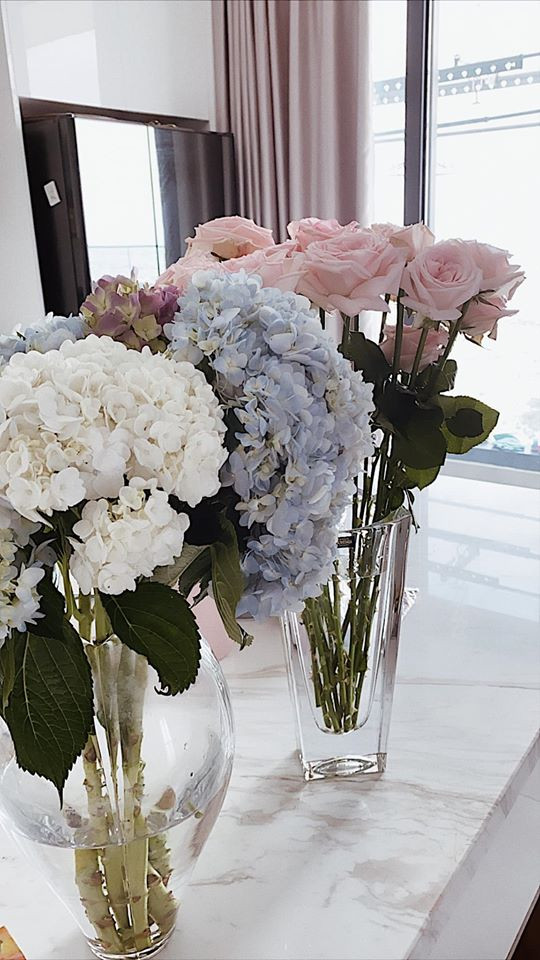 Á hậu Tú Anh khoe vườn hoa cẩm tú cầu rực rỡ bên trong biệt thự của vợ chồng cô.