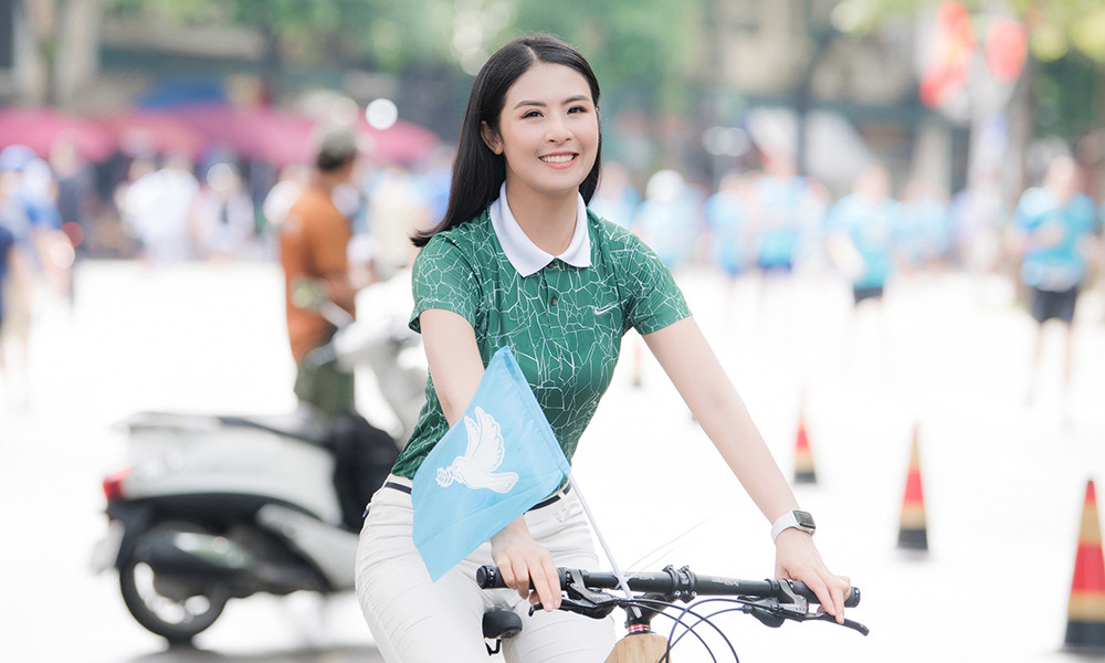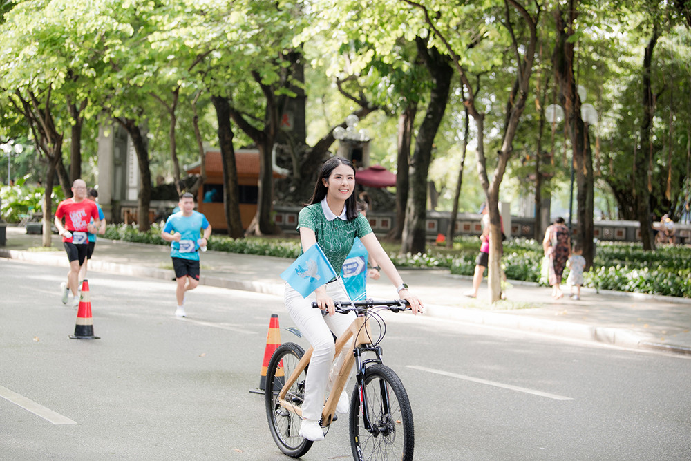 Hoa hậu cùng các đại diện của 30 đại sứ quán, các tổ chức quốc tế tại Hà Nội và gần 400 tình nguyện viên cùng diễu hành xe đạp quanh Hồ Gươm và các tuyến phố cổ Hàng Ngang, Hàng Đào, chợ Đồng Xuân…