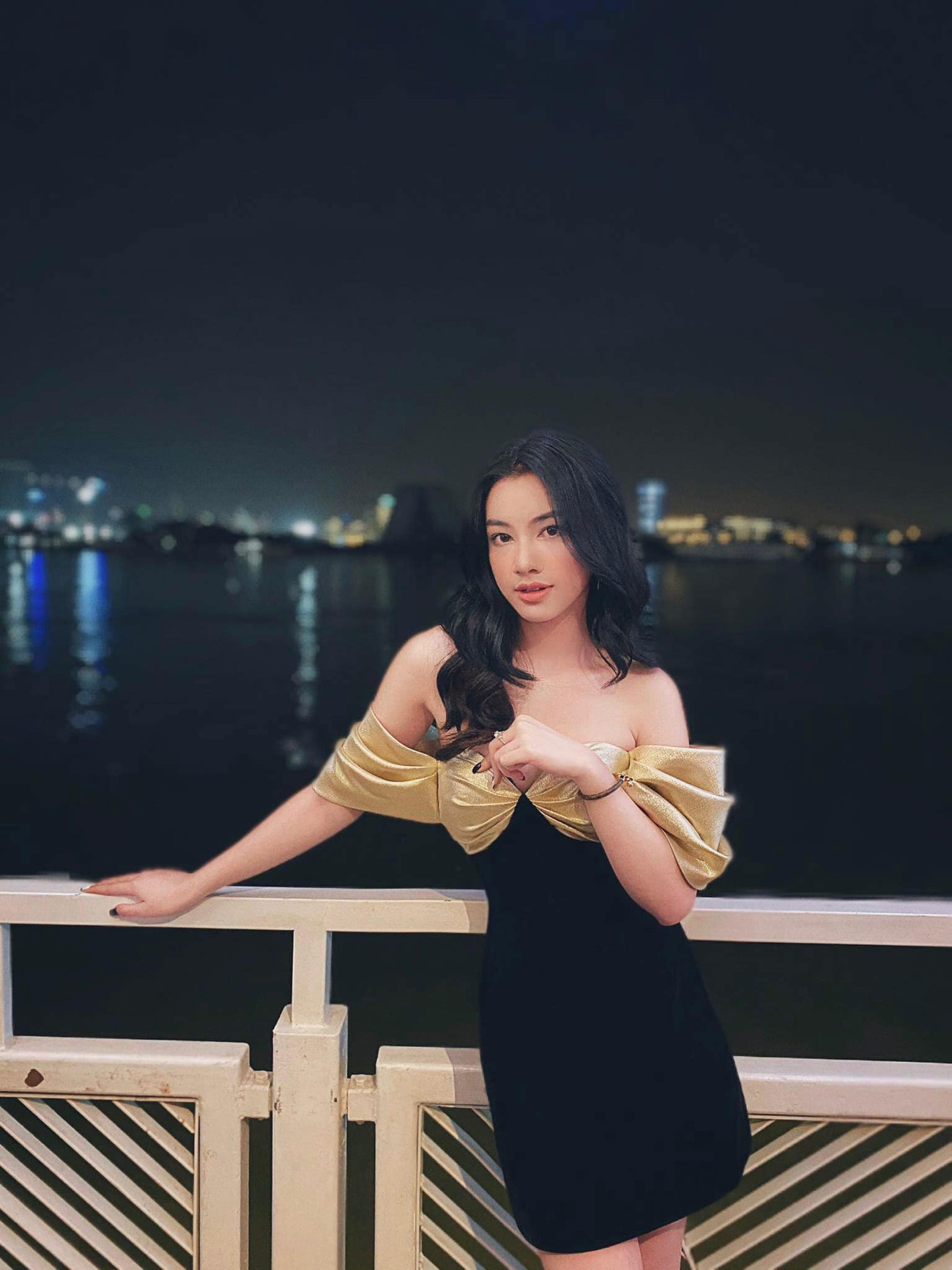 Cẩm Đan thường chọn trang phục là váy hai dây hoặc cúp ngực, bó sát để khoe trọn đường cong cơ thể.
