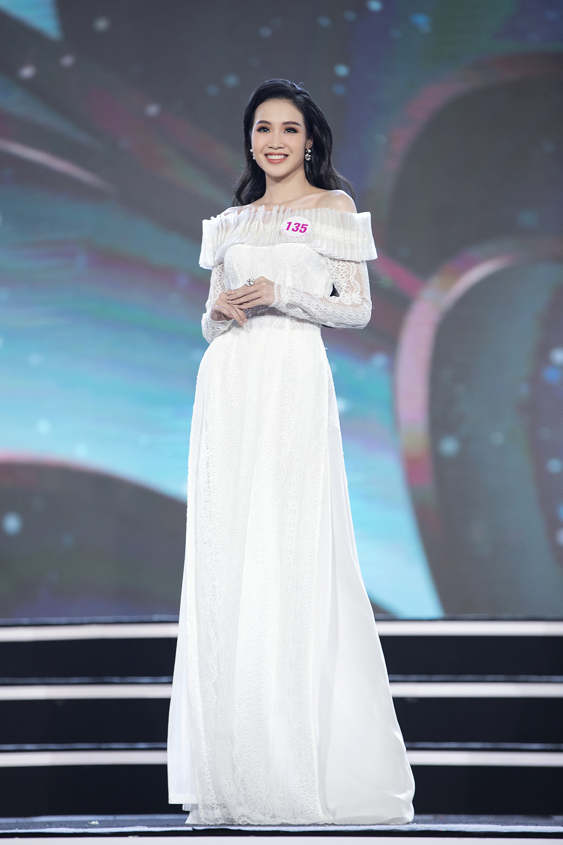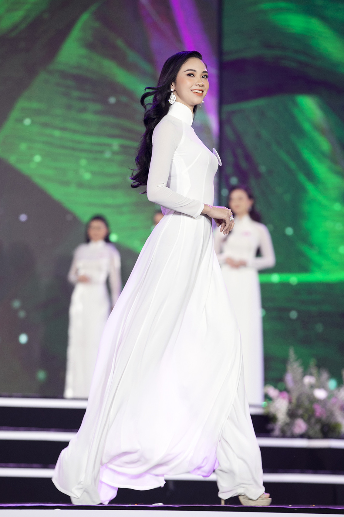 Bích Thùy trong phần trình diễn áo dài.