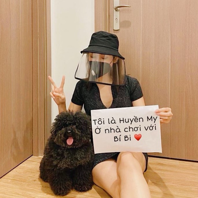Á hậu Huyền My ở nhà cùng chú cún cưng để hạn chế ra đường những ngày dịch bệnh bùng phát.