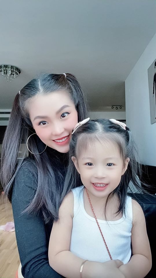 Á hậu Diễm Trang và con gái chụp ảnh vui vẻ khi ở nhà chống dịch.