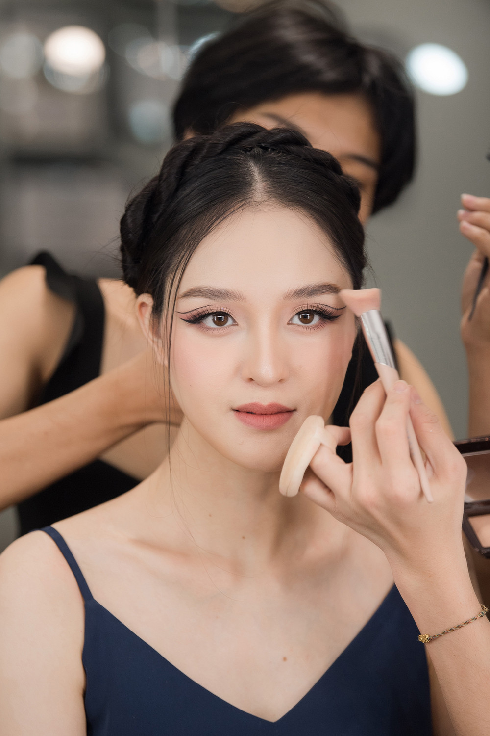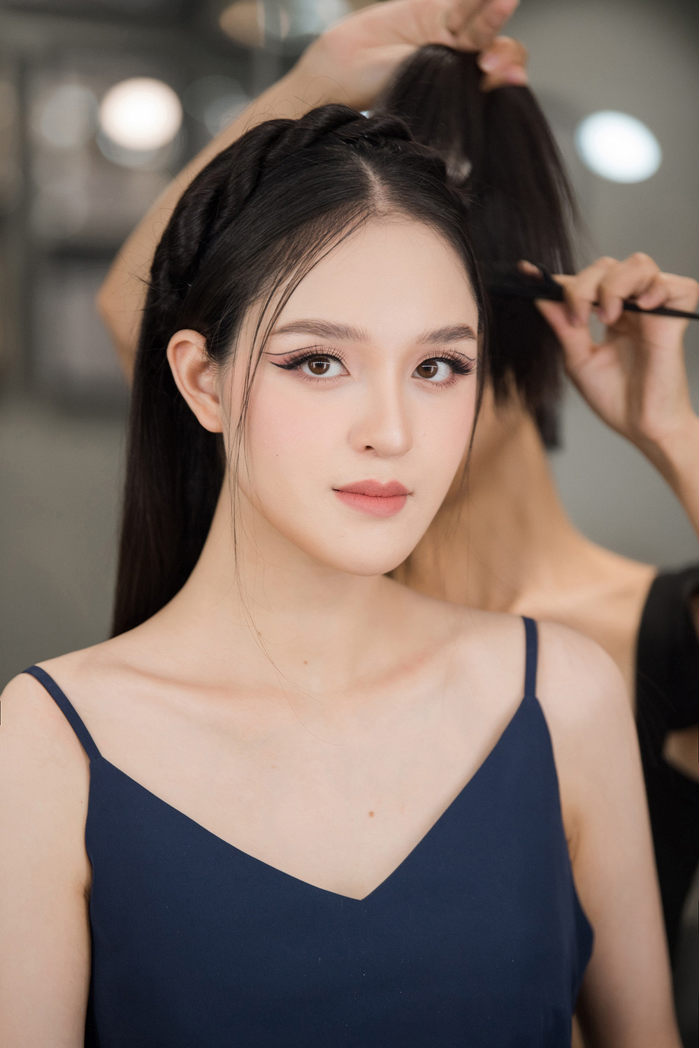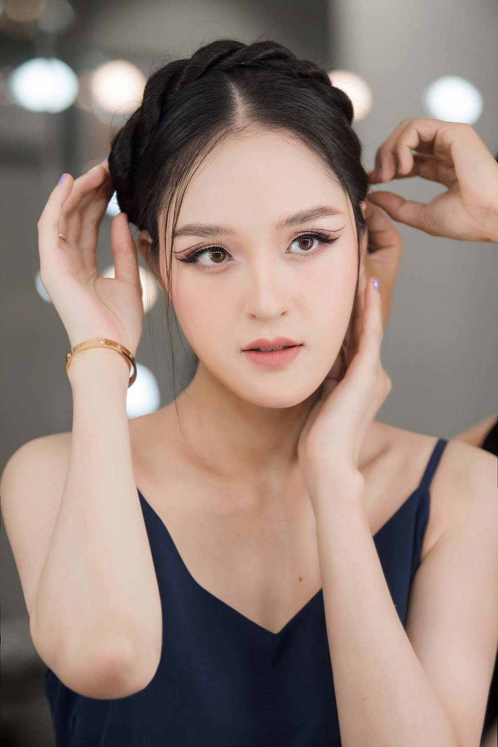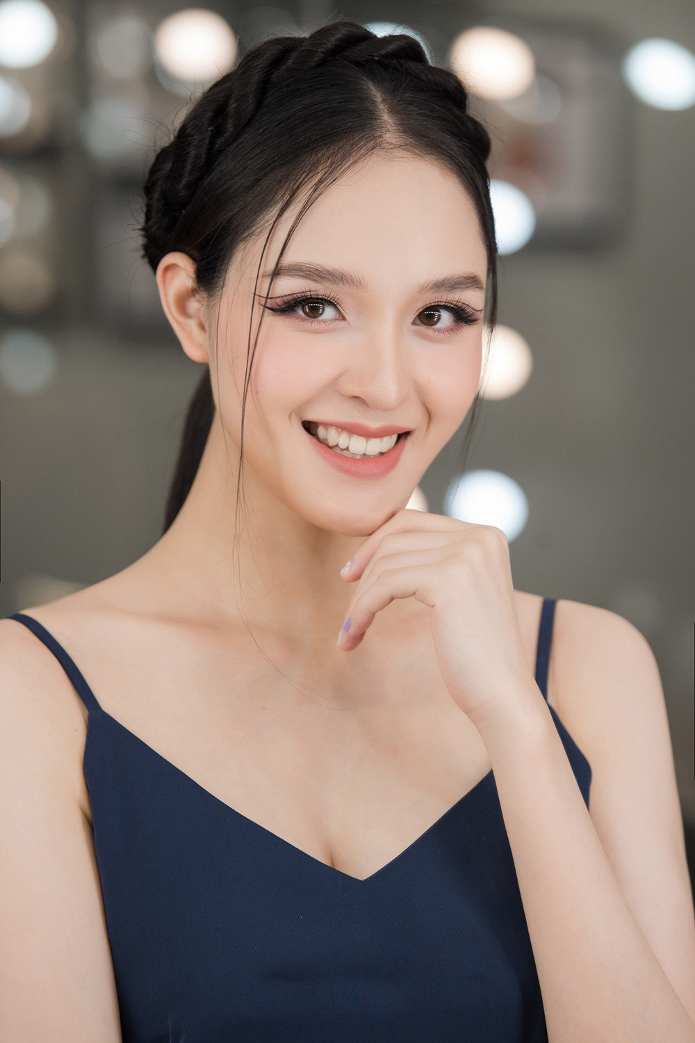 Người đẹp chọn cách trang điểm với tông màu nude nhẹ nhàng, tạo điểm nhấn bằng đôi mắt mèo ấn tượng. Sau nhiều năm vắng bóng, nhan sắc xinh đẹp và mong manh tựa sương khói của Hoàng Anh vẫn ‘đốn tim’ người hâm mộ.