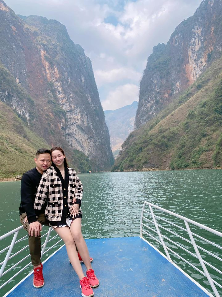 Á hậu Trà My cùng ông xã thưởng thức khung cảnh sông nước hữu tình.