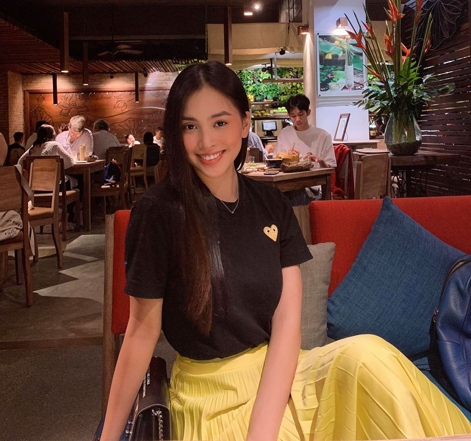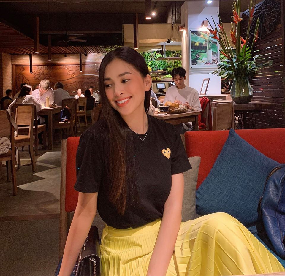 Hoa hậu Tiểu Vy giản dị nhưng không kém phần xinh đẹp khi đi chơi tối cuối tuần.
