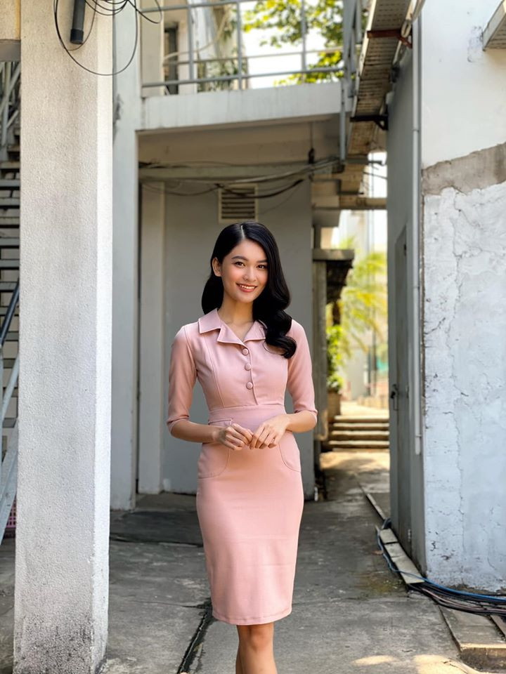 Á hậu Thuỳ Dung duyên dáng, thanh lịch trong bộ váy hồng khi làm khách mời trên truyền hình.