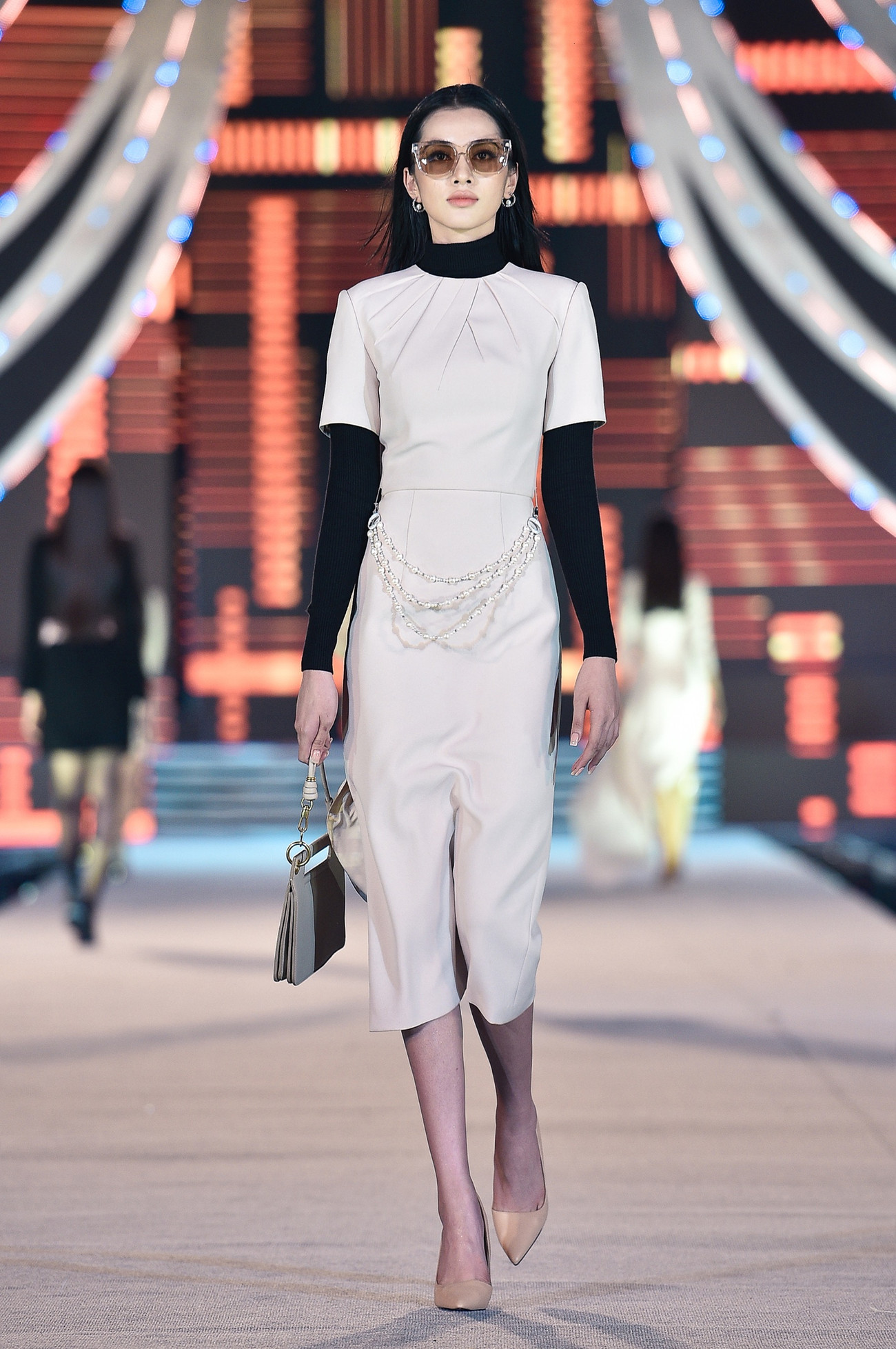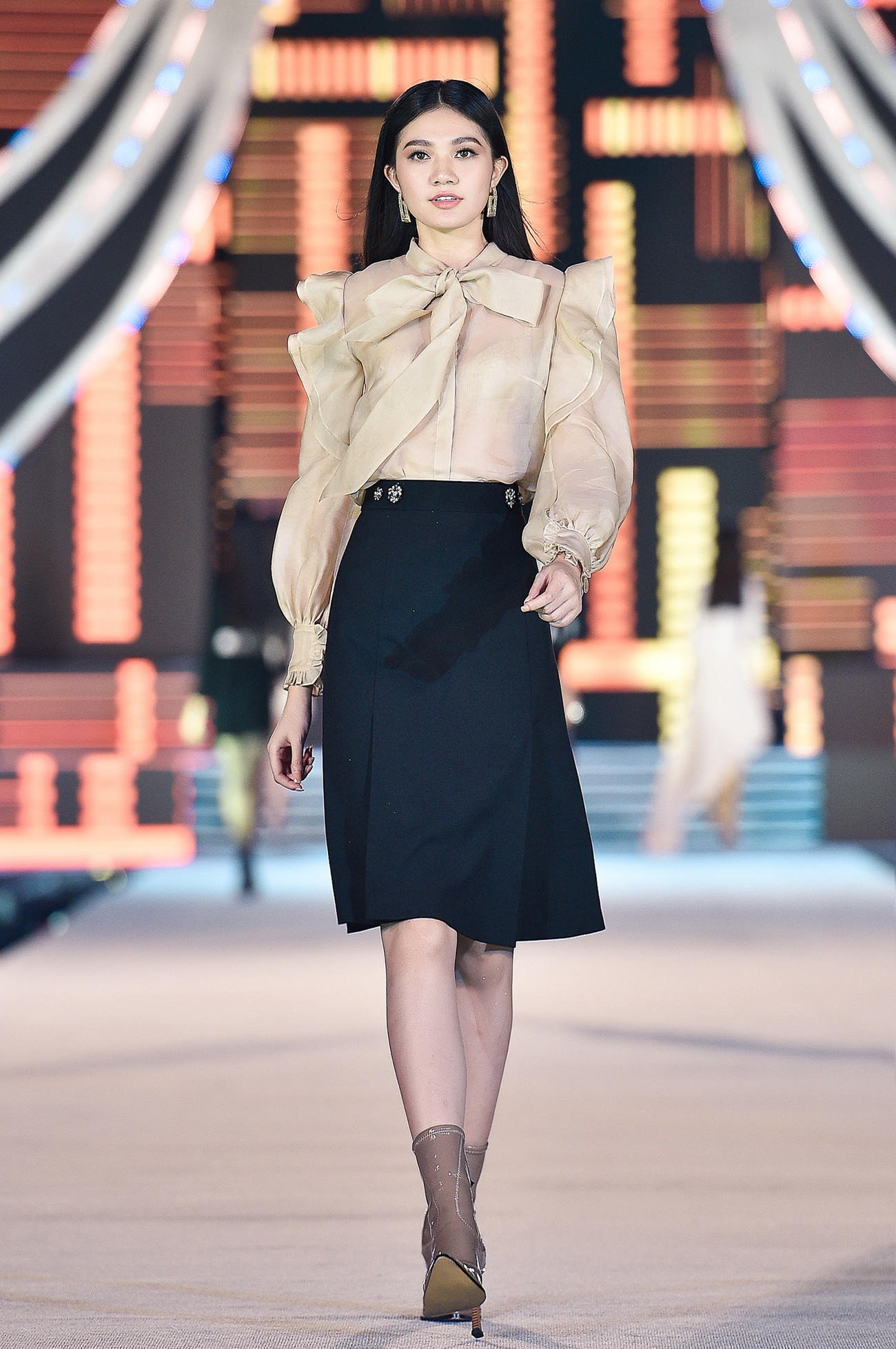 Siêu mẫu Như Vân xuất hiện mở màn BST và vị trí Vedette là Hoa hậu Lương Thuỳ Linh.
