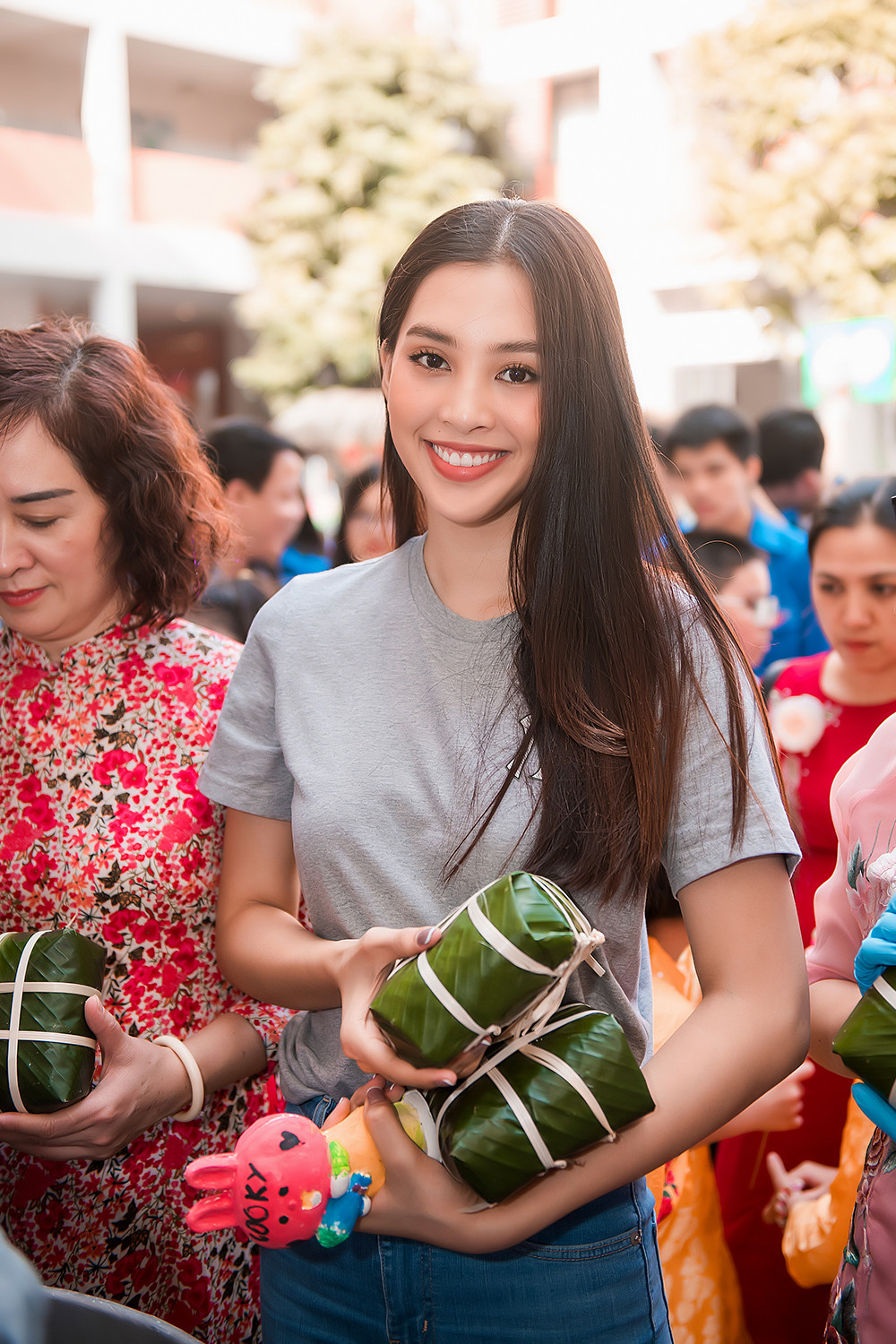 Nhân dịp năm mới sắp đến, Hoa hậu tiểu Vy cùng Á hậu Thuý An và Hoa khôi Thuý Vi vừa qua đã có mặt trong chương trình 'Tết sẻ chia, Tết yêu thương' năm 2020 với hoạt động gói bánh chưng trao tặng cho hàng ngàn trẻ em nghèo.