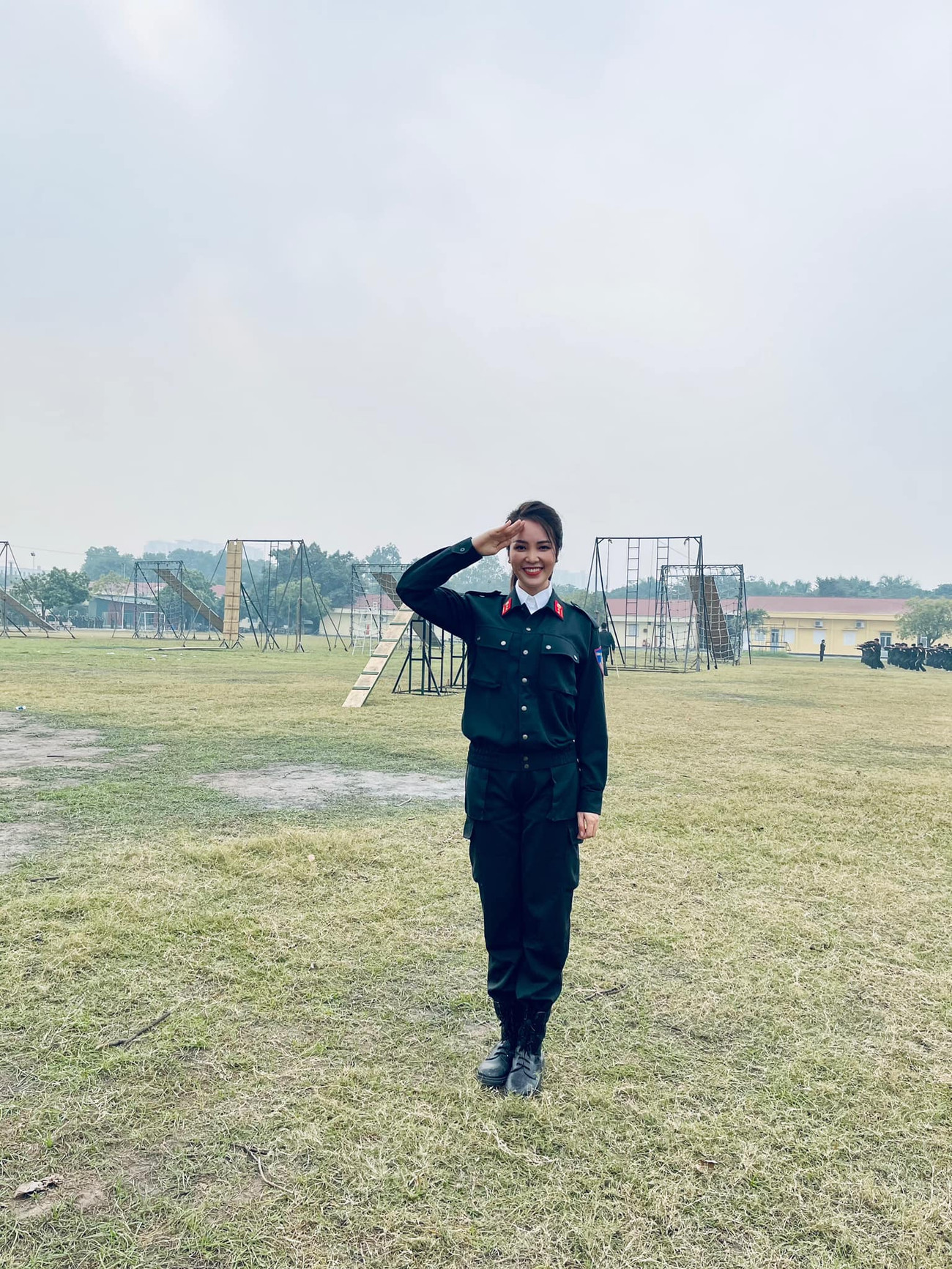 Á hậu Thuỵ Vân hoá cô chiến sĩ đáng yêu.