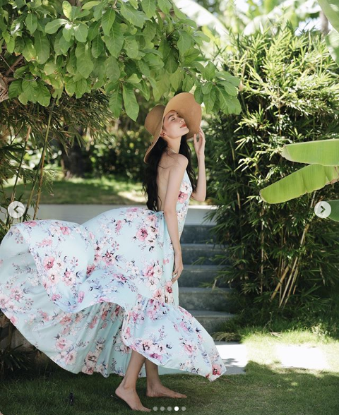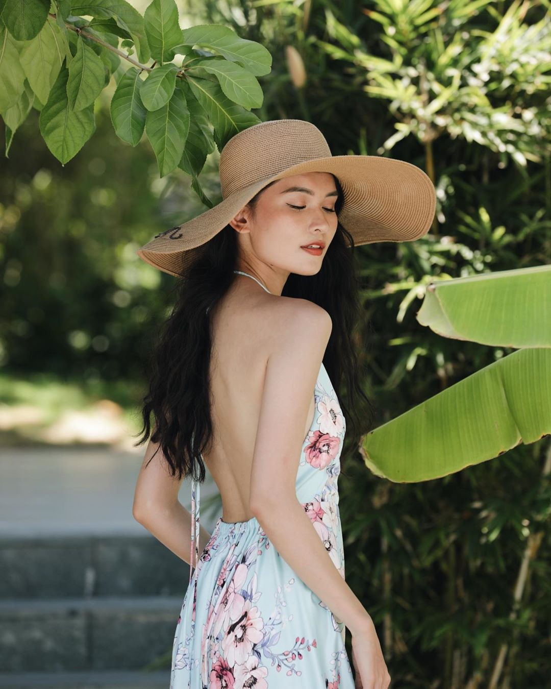 Á hậu Thuỳ Dung bay bổng trên biển trong bộ váy hoạ tiết hoa mùa hè.